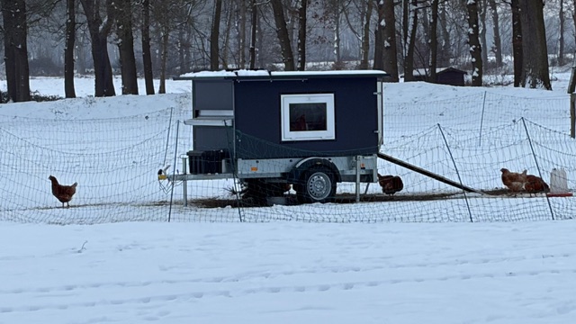 nze kippencaravan is een mobiele oplossing die onze kippen de vrijheid geeft om de natuur te ervaren. De caravan is speciaal ontworpen om de kippen een fijn en veilig leven te bieden. Elke dag kunnen de kippen naar buiten om te scharrelen en in het gras te ploeteren, precies zoals het hoort.